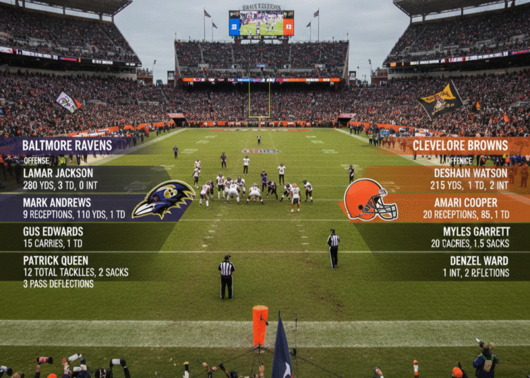 In this detailed guide, we’ll take a deep dive into Baltimore Ravens vs Cleveland Browns match player stats, covering quarterbacks, running backs, wide receivers, defensive units, and special teams. Actually, we’ll go beyond surface-level numbers and explore what these stats truly mean for both franchises.
