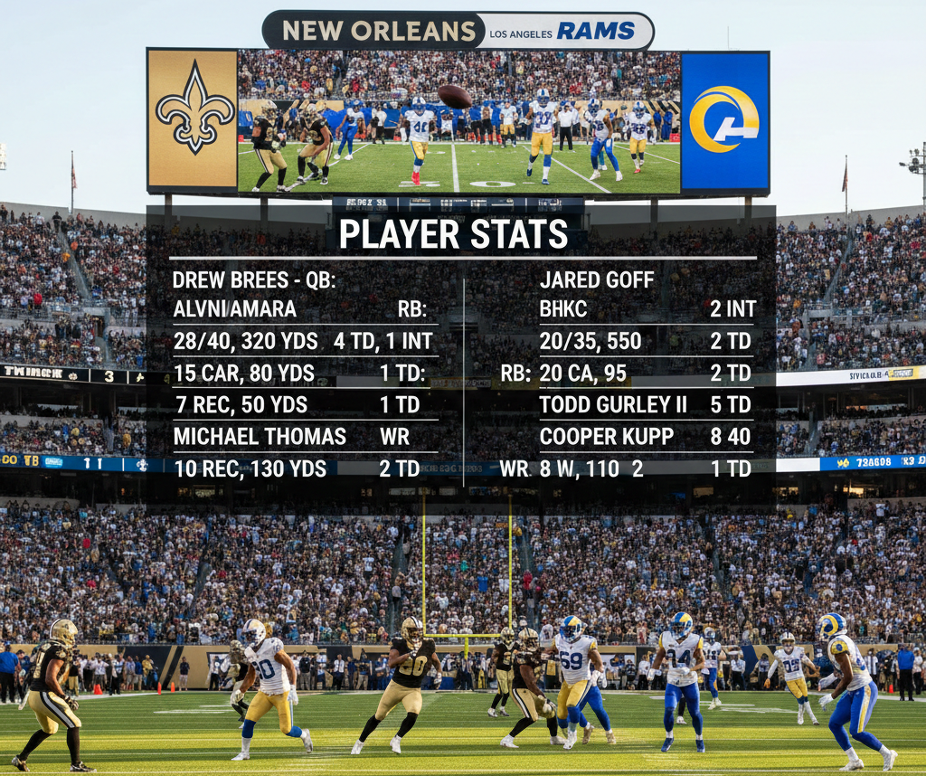 These moments heavily influence final New Orleans Saints vs Los Angeles Rams match player stats and fan reactions.